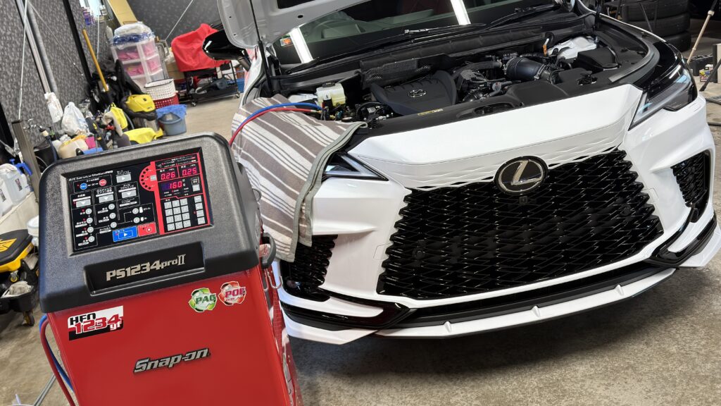 【2/4の施工車両】 施工実績 2026.02.04 茨城県笠間市よりLUSTER龍ケ崎本店にお越しいただきました。 ・LEXUS RX500h FSPORT Performance TRD ・ホワイトノーヴァガラスフレーク ・ダイヤⅡキーパー ・スナップオン、エアコンステーション ・窓ガラスコーティング ・ホイールコーティング ・レンズコーティング エアコンガスの回収量が465g、500hの満充填量は570g、不足分105gでした。 新車時にしっかりと満充填しておけ4〜5年ノータッチで快適に使用できます。 忘れずに作業しておきましょう。